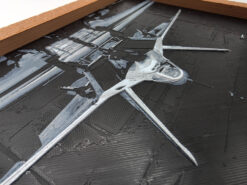 Features: Integrated textured frame with a rugged, organic grain that contrasts against the technical precision of the aircraft.